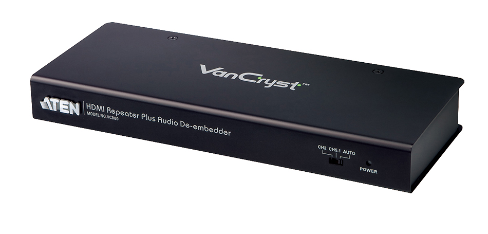 Le VC880 est un répéteur HDMI accompagné d’un démultiplexeur audio qui extrait et convertit le signal audio de l’entrée HDMI. Cela signifie que, en plus de la sortie de signal audio et vidéo HDMI répétée, les utilisateurs peuvent aussi choisir entre le son stéréo analogique provenant de connecteurs RCA et le son numérique provenant de connecteurs optiques ou coaxiaux, bénéficiant ainsi d’une sortie audio supplémentaire de haute qualité. Grâce à la prise en charge des formats de télévision 3D, le VC880 est la solution idéale pour les utilisateurs qui veulent profiter de vidéo haute définition tout en ayant la possibilité de choisir la sortie audio haute définition sur des téléviseurDescription produit