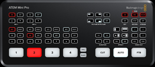 DISPONIBLE EN LOCATION : Ce modèle inclut toutes les fonctionnalités présentes sur l’ATEM Mini, mais vous permet aussi d’enregistrer directement sur des disques flash USB en H.264 et de faire du streaming en direct sur YouTube Live, facebook etc.. via le protocole Ethernet. Cet appareil comprend en outre un écran multi view, des médias, et le mode de commutation Program/Preview. Il affiche également l’état de l’enregistrement, du streaming et de l’audio.EN Utilisant le logiciel de gestion de l'ATEM Mini il est possible de changer et d'adapter de nombreux paramètres comme le son de passer de l'entrée MICRO à l'entrées AUX de faire la capture de médias etc...